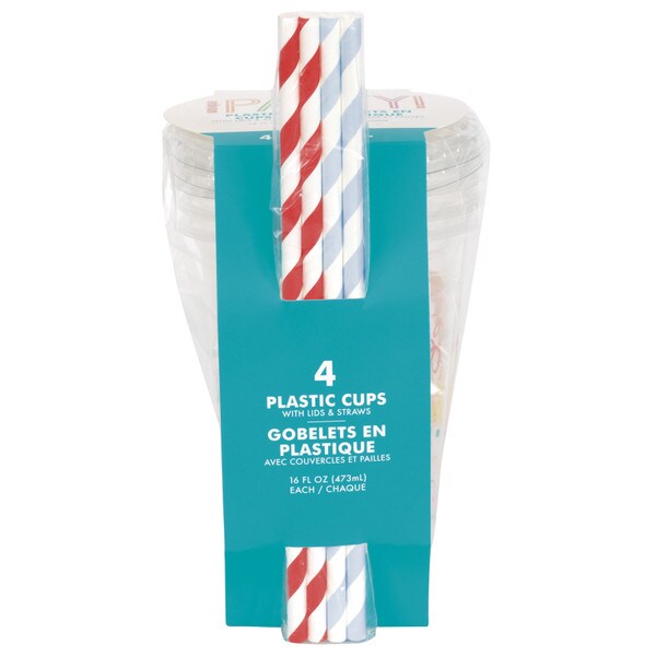 44435 - Bright Party 4 Reusable Plastic Cups With Lids & Straws 473ml (16oz) SKU: 44435 Barcode: 011179444359Pack Size: EachRange: ReusableMaterial: PlasticSize: 473mlType: CupInner Qty:6Outer Qty:72 Please Log in to see price or purchase this item Quantity discounts available QuantityPrice This item is IN STOCK Details Reusable DetailsBackDetailsReusable