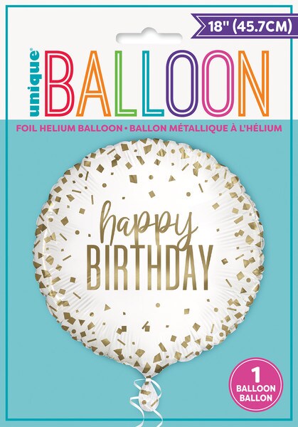 78447 - Gold Confetti Happy Birthday 45cm (18") Foil Balloon Packaged SKU: 78447 Barcode: 011179784479Pack Size: EachRange: EnsembleCollection: Birthday GoldenMaterial: FoilSize: 45cmType: BalloonOccasion: BirthdayColour: GoldInner Qty:5Outer Qty:240 Please Log in to see price or purchase this item Quantity discounts available QuantityPrice This item is IN STOCK Details Gold Confetti Happy Birthday 45cm (18") Foil Balloon Packaged DetailsBackDetailsGold Confetti Happy Birthday 45cm (18") Foil Balloon Packaged