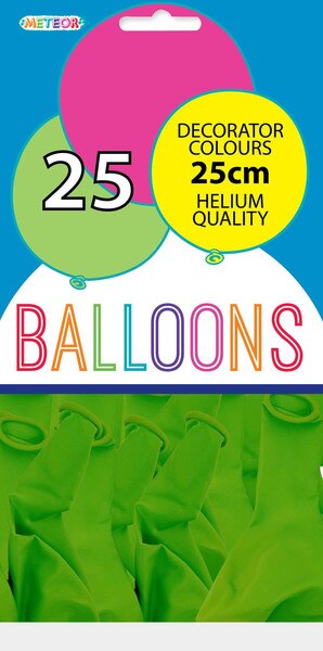 MFBA-607 - Lime Green - 25 x 25cm (10") Decorator Balloons SKU: MFBA-607 Barcode: 9311965236078Pack Size: 25Range: DecoratorMaterial: LatexSize: 25cmType: BalloonColour: Lime GreenInner Qty:10Outer Qty:200 Please Log in to see price or purchase this item Quantity discounts available QuantityPrice This item is IN STOCK Details Lime Green - 25 x 25cm (10") Decorator Balloons DetailsBackDetailsLime Green - 25 x 25cm (10") Decorator Balloons