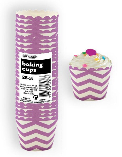 47277 - Chevron Pretty Purple 25Ct Paper Baking Cups SKU: 47277 Barcode: 9311965472773Pack Size: 25Range: Decorative ColourCollection: ChevronMaterial: PaperType: Baking CupsColour: Pretty PurpleInner Qty:12Outer Qty:72 Please Log in to see price or purchase this item Quantity discounts available QuantityPrice This item is IN STOCK Details Chevron Pretty Purple 25Ct Paper Baking Cups DetailsBackDetailsChevron Pretty Purple 25Ct Paper Baking Cups