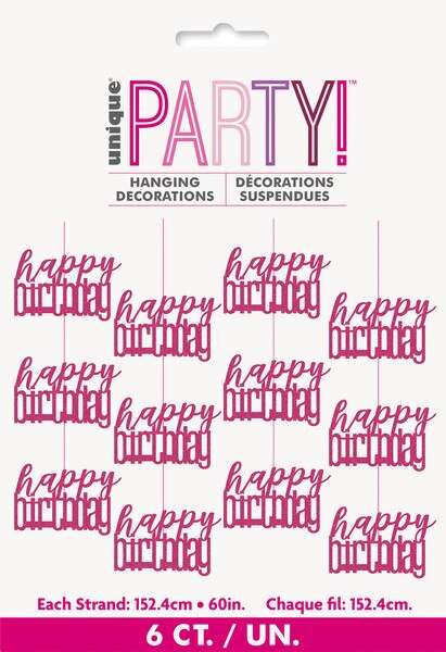 55320 - Glitz Pink 6 Hanging Decorations 1.5m (5') - Happy Birthday SKU: 87281 Barcode: 011179872817Pack Size: 6Range: GlitzCollection: Birthday GlitzMaterial: FoilSize: 1.5mType: Hanging DecorationsOccasion: BirthdayColour: Hot PinkInner Qty:12Outer Qty:144 Please Log in to see price or purchase this item Quantity discounts available QuantityPrice This item is IN STOCK Details Glitz Pink 6 Hanging Decorations 1.5m (5') - Happy Birthday DetailsBackDetailsGlitz Pink 6 Hanging Decorations 1.5m (5') - Happy Birthday